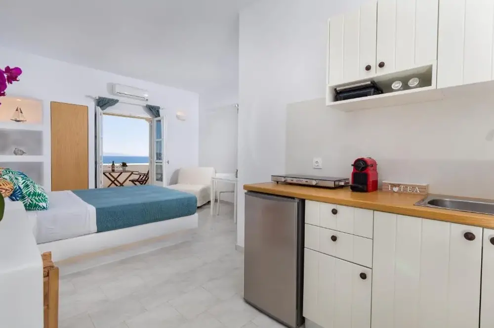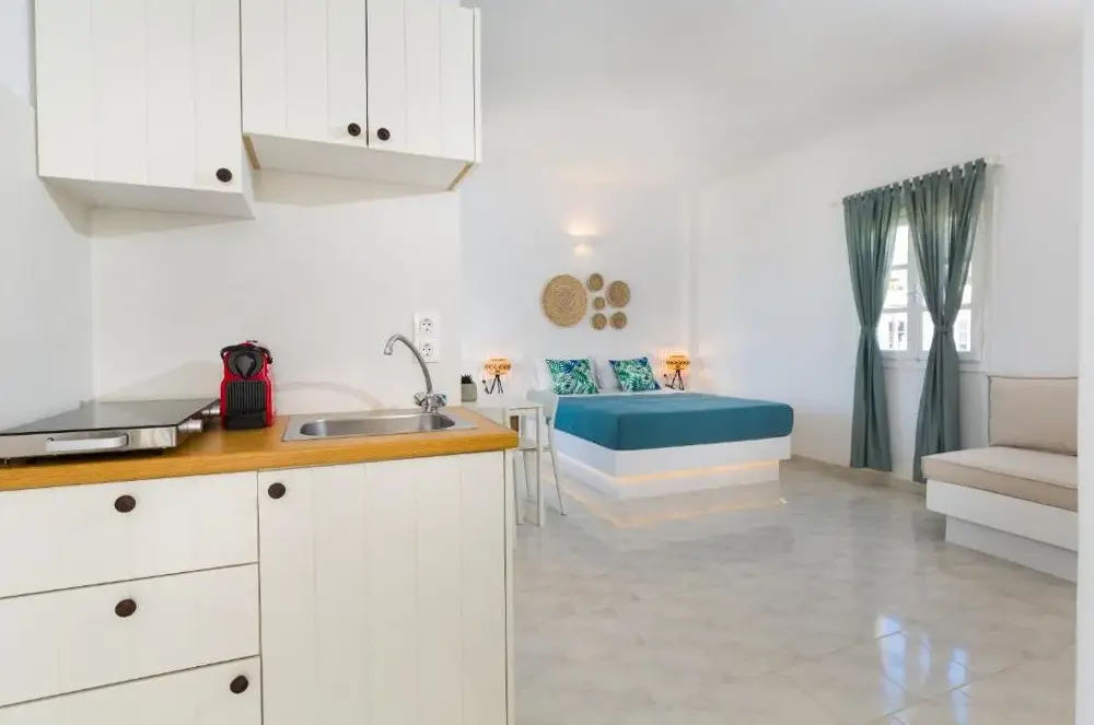 Beachfront Location: La Mer Seaside Apartments in Drios offers direct beachfront access with stunning sea views. Guests can relax on the sun terrace or in the lush garden, enjoying the serene surroundings. Spa Facilities: The property features spa facilities, providing a perfect retreat for relaxation. Free WiFi is available throughout the apartment, ensuring connectivity for all visitors. Comfortable Accommodations: Each apartment includes air-conditioning, a terrace or balcony, a kitchenette, and a private bathroom. Additional amenities include a sofa bed, soundproofing, and a dining table, catering to all guest needs. Local Attractions: Drios Beach is a 16-minute walk away, while Paros National Airport lies 8.7 mi from the property. Nearby attractions include the Wine Museum of Naousa and Venetian Harbor and Castle, each approximately 9.9 mi distant.